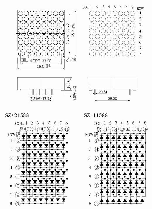 - 描述:3.7mm 8*8點(diǎn)陣共陽(yáng)