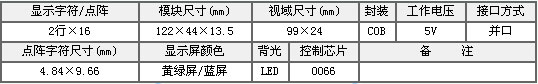- 名稱:OCMC2X16B 藍(lán)屏5V