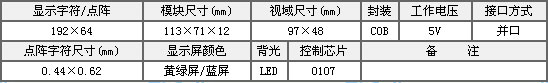 - 描述:品牌:金鵬,模塊尺寸:113X71X12 視域尺寸:97X48 控制IC:0107,封裝COB