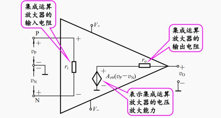 ● 理想的運(yùn)算放大器具有無(wú)窮大的開(kāi)環(huán)增益,無(wú)窮大的輸入電阻和 0 輸出電阻,即:Avo→∞,ri→∞, ro=0。