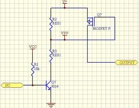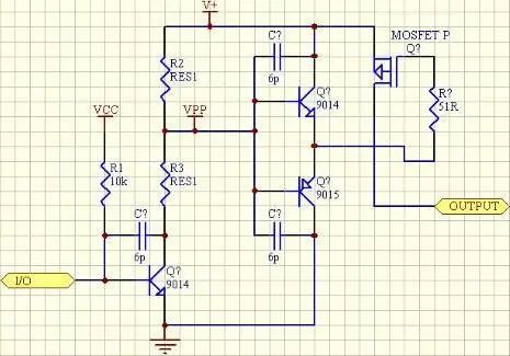 其中R1=10K,R2、R3大小由V+決定,V+越高,R2、R3越大,以保證電阻及三極管功耗在允許范圍,同時(shí)保證R2和R3的分壓VPP=V+ 減10V,同時(shí)V+不能大于40V。